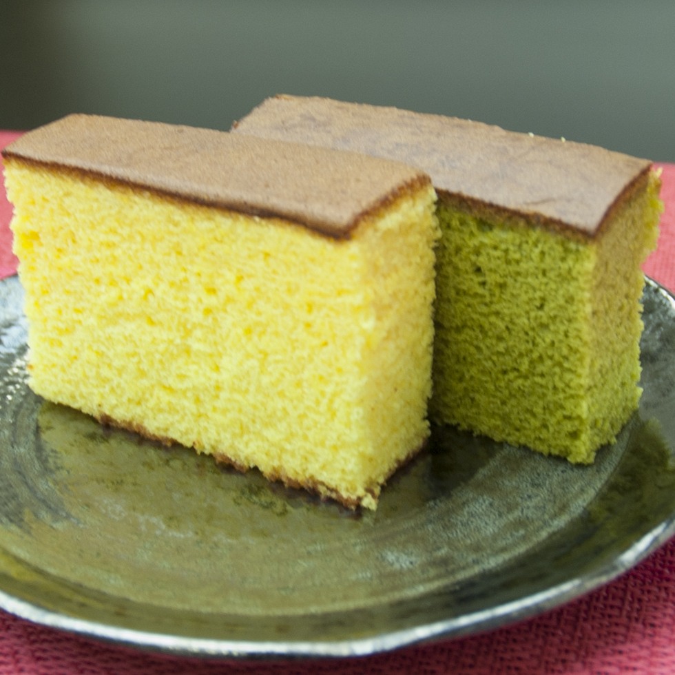 甘みを抑え、卵の風味を大切に焼き上げた黄金色のかすてらと、京都宇治の辻利一本店の薫り豊かな抹茶を使用した抹茶かすてらをお楽しみください。
